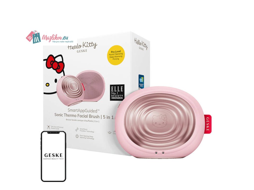 Sonic Facial Cleansing Brush 5-in-1 by Geske with App (Hello Kitty Pink)